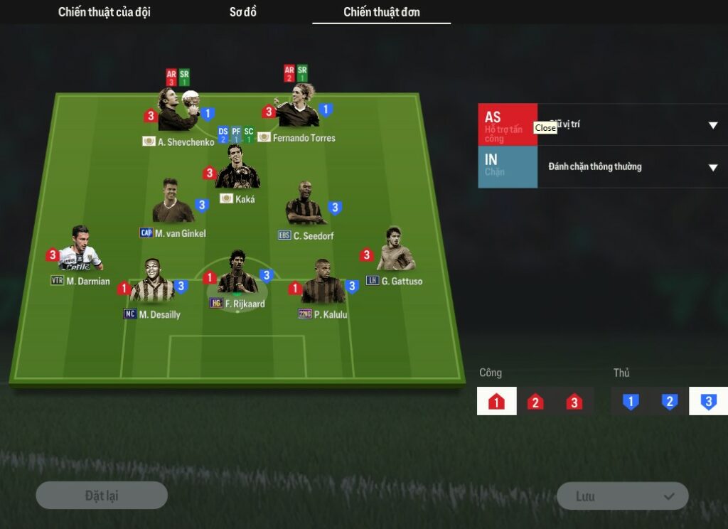 | Phản công nguy hiểm: Nhanh chóng xuyên thủng 5 hậu vệ, sử dụng tốc độ của hai cánh và sự phối hợp của cặp tiền đạo để tạo ra một pha phản công trực diện. | Khoảng trống bên DM: Khu vực giữa các cầu thủ chạy cánh và tiền vệ, nơi bóng được chuyền chéo để đến đội đối phương. |