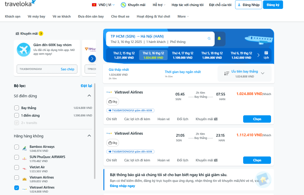 - Bước 1: Truy cập website chính thức của Vietravel Airlines.